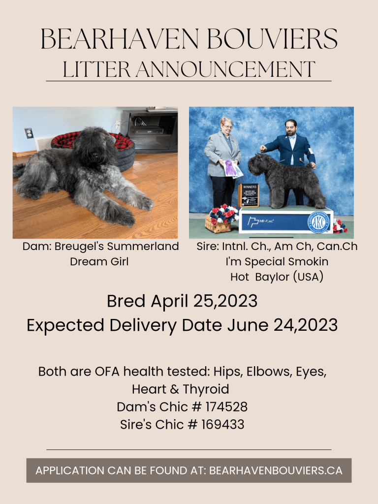 Litter Announcement Share this: Share on X (Opens in new window) X Share on Facebook (Opens in new window) Facebook Related April 26, 2023 by Bearhaven Bouviers Leave a comment