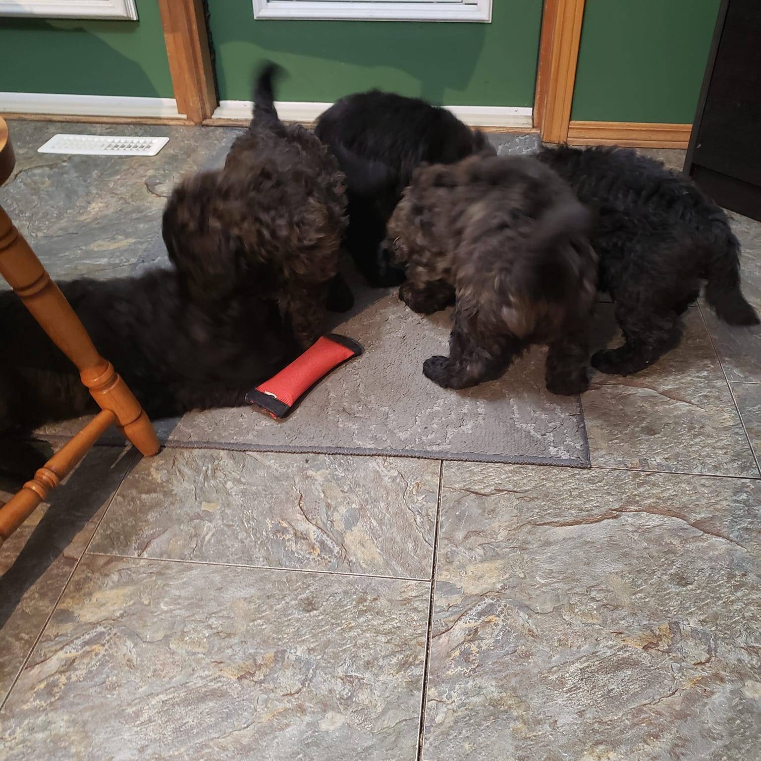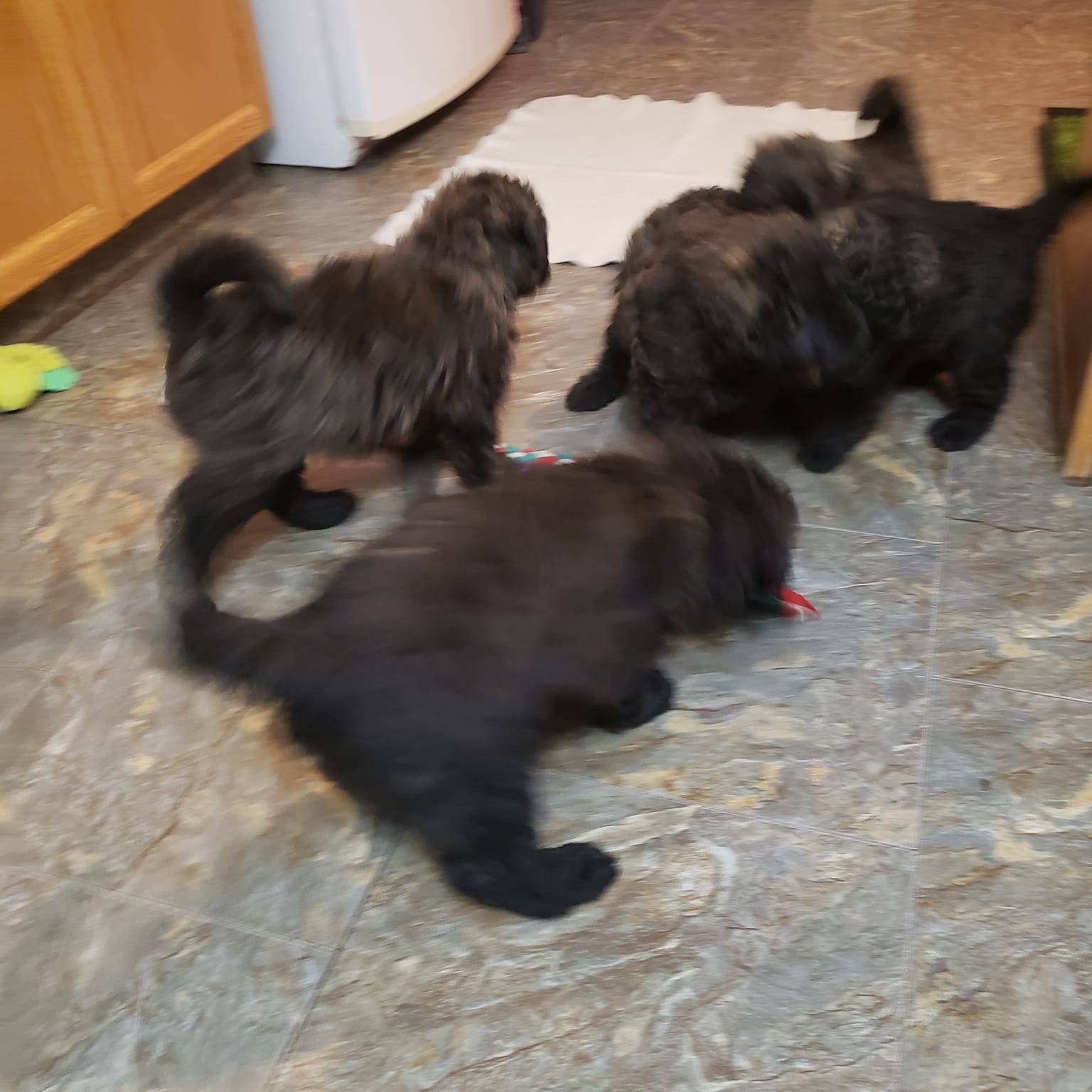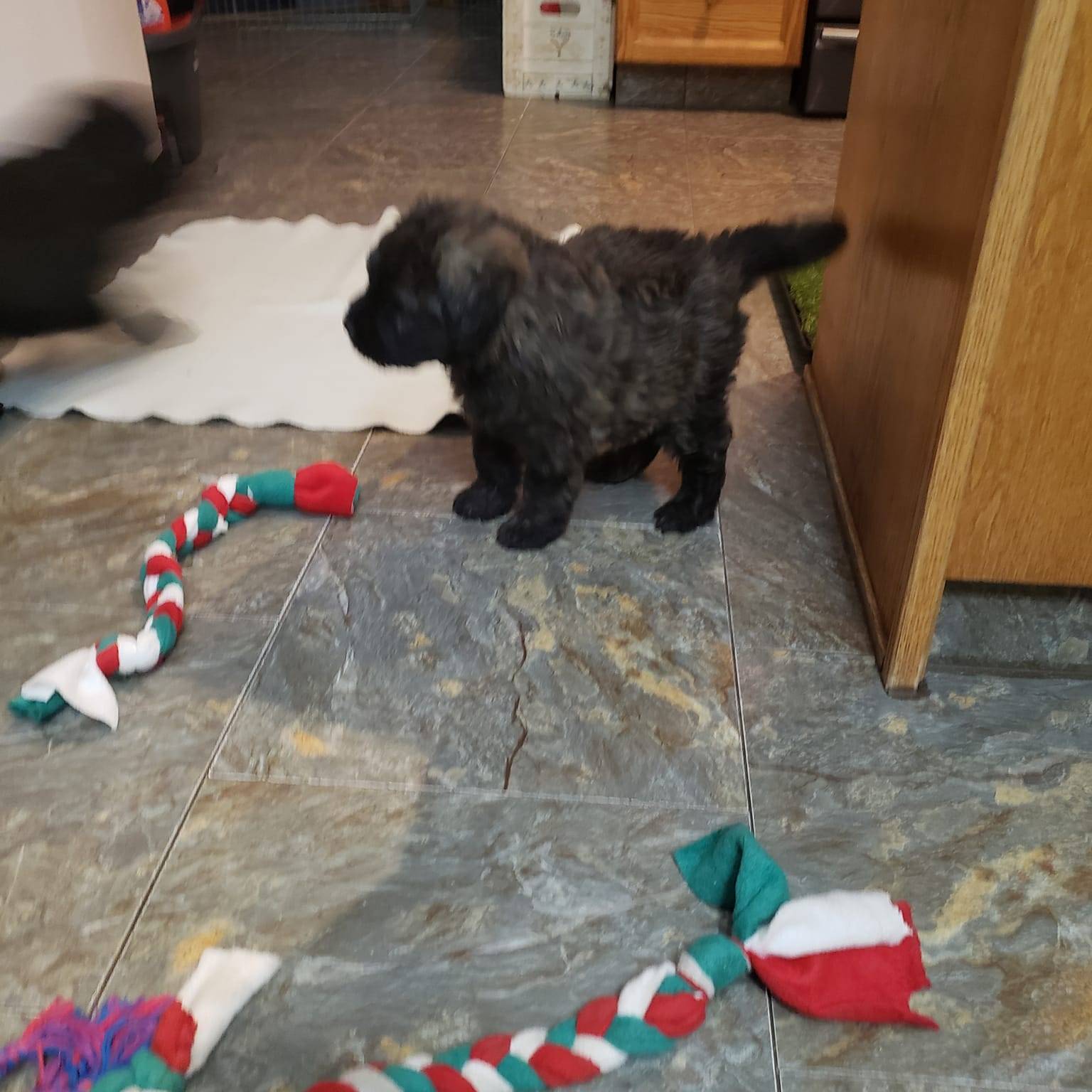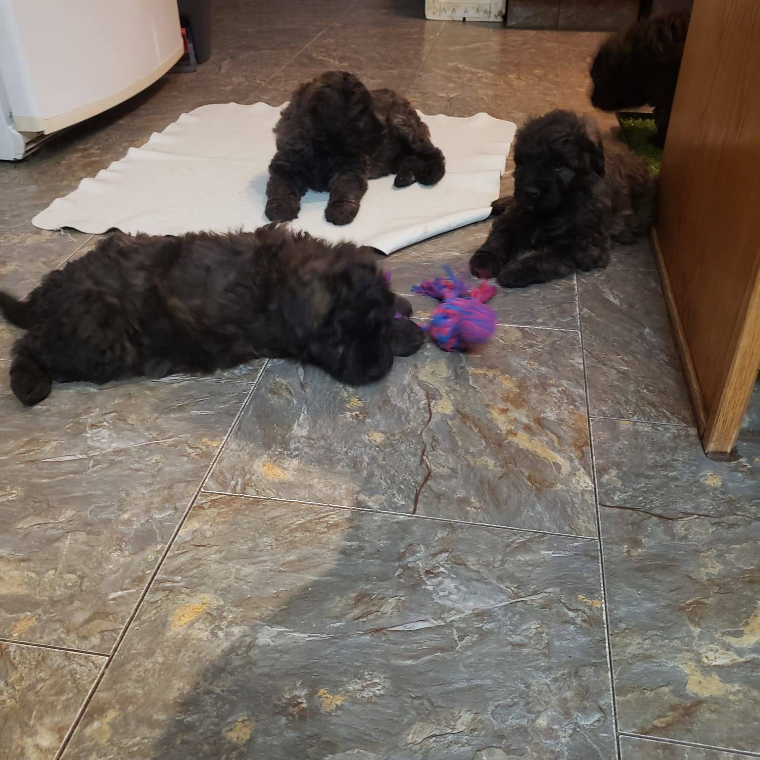 Happy Monday! So much fun! First play time in the kitchen/dinning room after breakfast!! Pups all played so much it didn’t take long before they were all having a nap. Best way to start my day!! January 30, 2023January 30, 2023 by Bearhaven Bouviers Tags: bouvier, bouvier dogs, bouvier puppies, breeder, central alberta pets Leave a comment