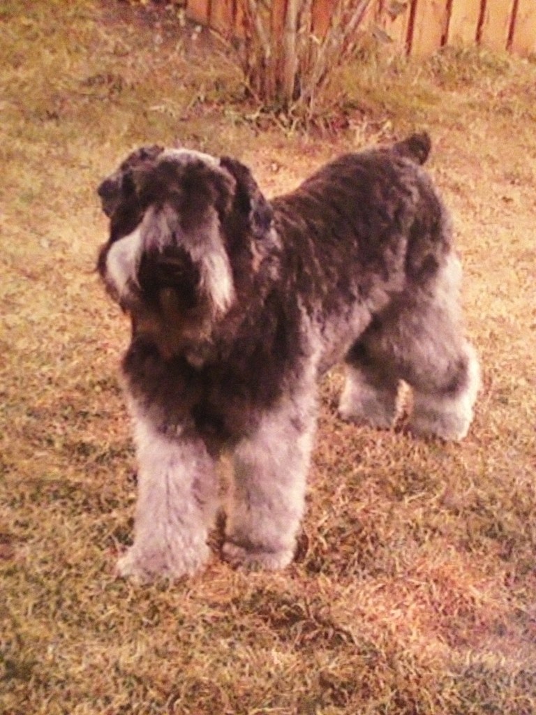 Our first Bouvier… and almost our last! Sheba was from a back yard breeder just out to make  a fast buck. For the most part she was a great family pet. We quickly learned the importance of select breeding.